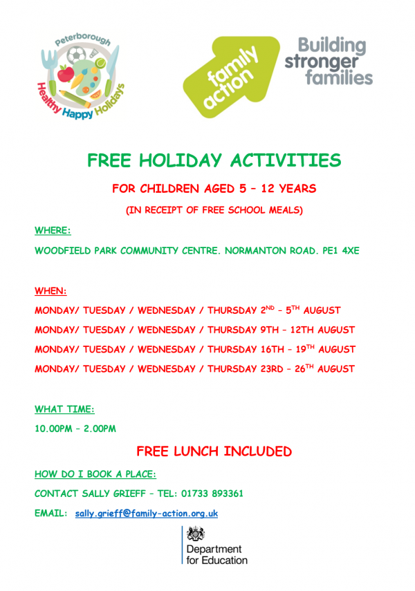 Please see attached a message from Peterborough city council regarding holiday activities for families in receipt of free school meals